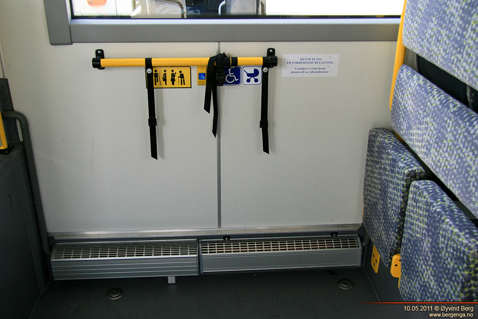 Kapasitet: 40 sitteplasser og 28 ståplasser eller 40 sitteplasser, 24 ståplasser og 1 rullestol