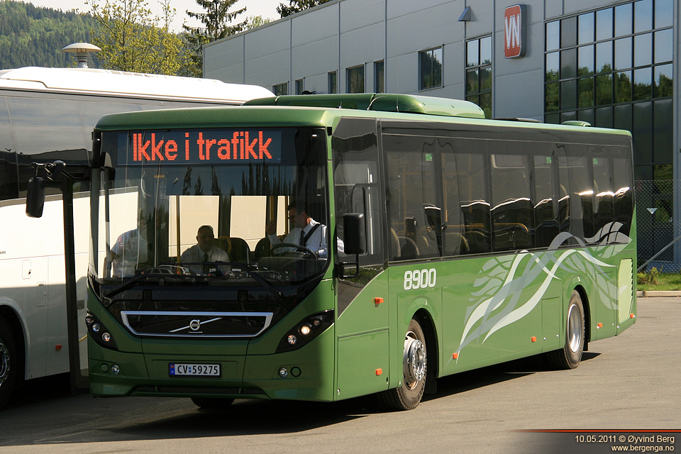 Siste prøvetur ble med Volvo 8900LE, som jo er den største nyheten, siden det er en helt ny modellserie fra bunnen av. Eksemplarene som Volvo Norge har er noen av de aller første komplette prototypene, så det er flere ting som kommer til å bli eller har blitt endret i forhold til serieproduksjonen. Det meste angår diverse praktiske og tekniske detaljer og løsninger, men det blir også en liten endring på lukene i fronten ble jeg fortalt, fordi det sånn det er nå visstnok er vanskelig å få plassert noe operatørlogo og sånt.