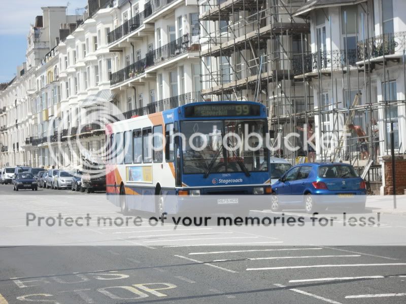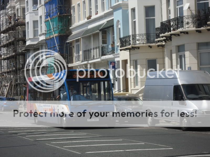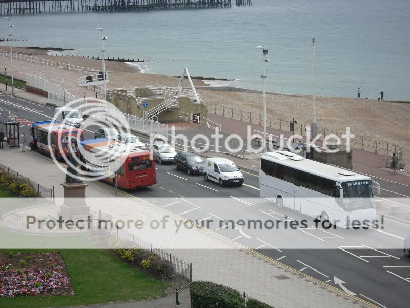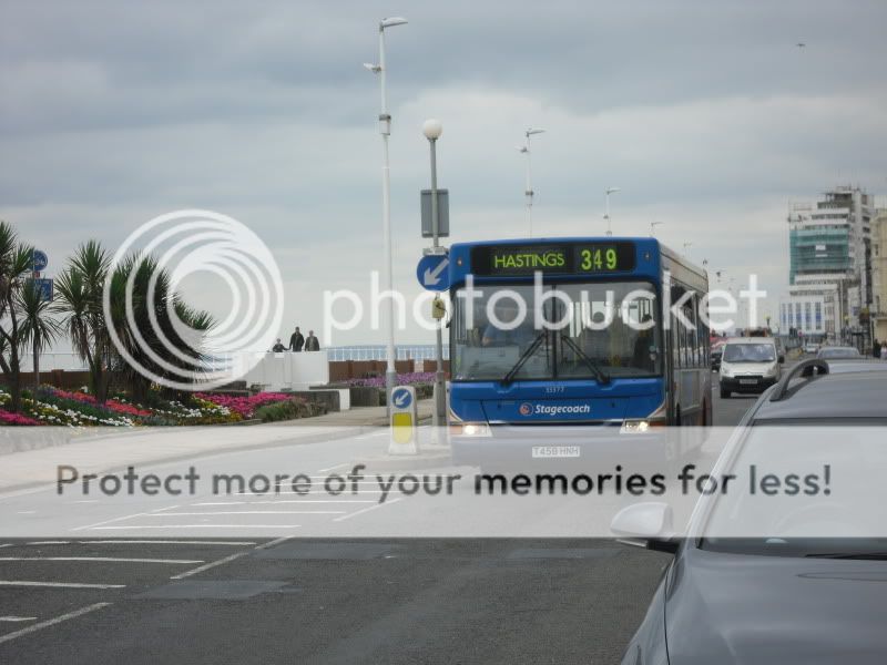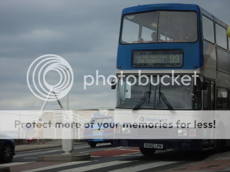 Börjar med en halvdan bild från bussen på EFs egna Routemaster på Hastings station.