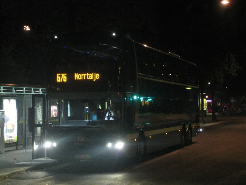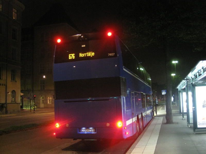 ... eller express kanske är lite att ta i, även om linjen har få stopp och varvar mellan motorväg och motortrafikled. Gillar dubbeldäckarna i dagsljus och gillar dom ännu mer i mörkret. Jag tror att bilderna vart ok iaf.  :P Det fick bli två 676:or - ingen 696:a tyvärr, trots att jag hade plan på att plåta en. 7407 och 7402, fotograferade vid 23:41 resp. 00:06:
