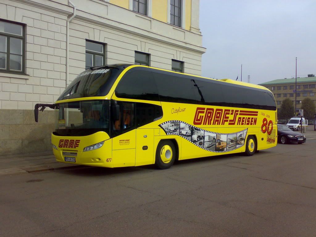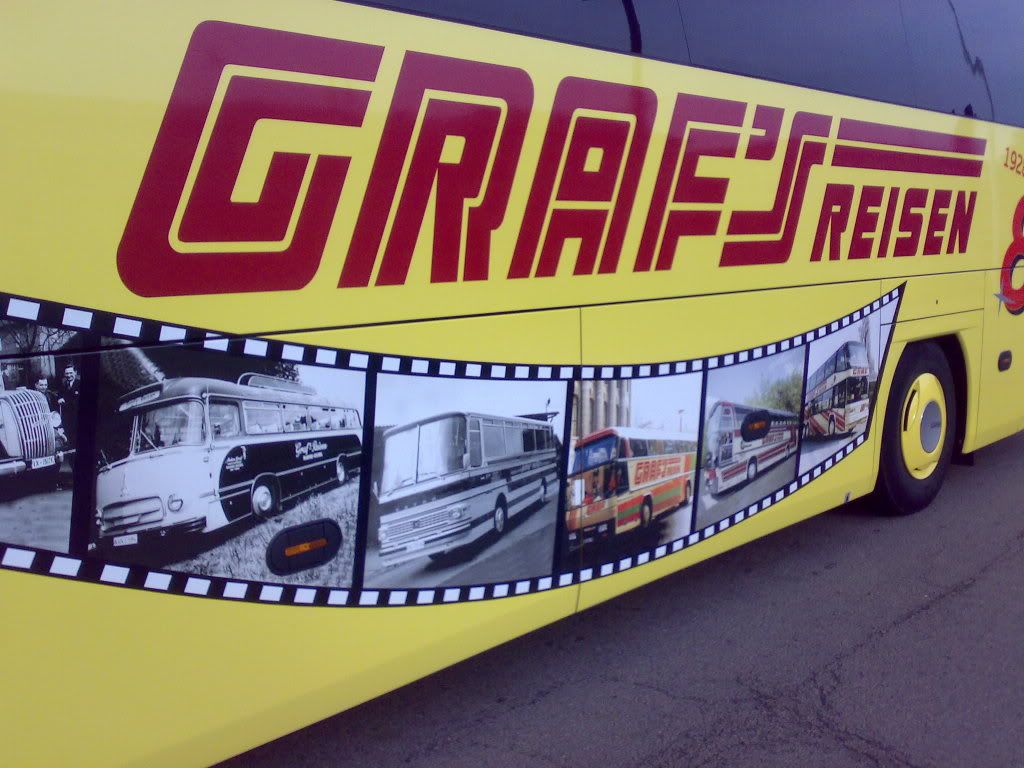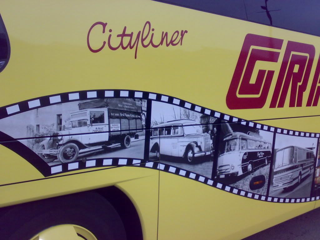 Trevligt. Graf´s Reisen, Herne, firade sitt 80 års jubileum som företag 2008 med sina 5 nya Cityliner (474-478) dekorera med denna stripning.