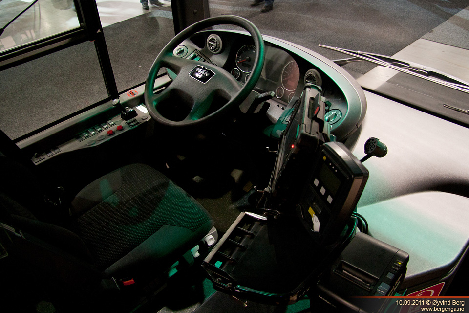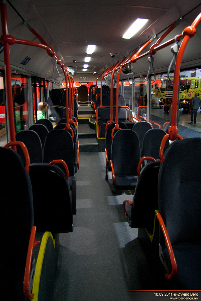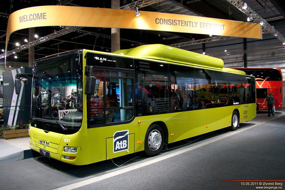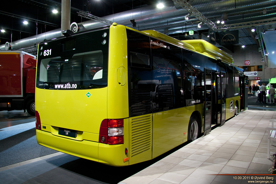 MAN måtte jo selvfølgelig vise en buss fra sin største anbudsleveranse i Norge gjennom tidene, til anbudet i Trondheim som startet nylig. TrønderBilene #631 som den ser ut for å være tilhører egentlig MAN. Om det skal være sånn permanent eller om den overdras til TrønderBilene etter hvert er jeg usikker på.