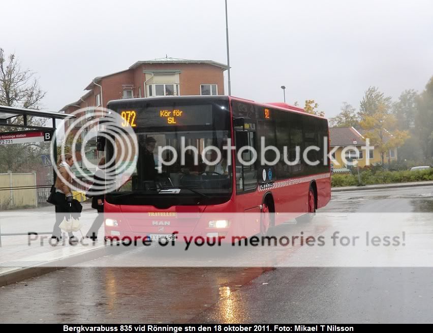 Slutligen en bild på Närtrafiklinje 972 där trafiken utförs av Bergkvarabuss/Traveller. Är det även detta bolag som är trafikutövere för linje 731 i Rönninge? Linje 731 marknadsförs som en ren SL-linje, medan 972:an ses som en Närtrafiklinje.