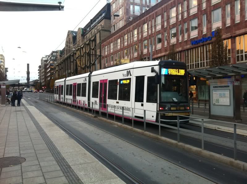 I förrgår såg jag på nyheterna att en ny spårvagn hade fått den nya framröstade SL-lacken, vilket gav mig idén att plåta lite, ifall denna vagn skulle komma på bild, men så vart det ej. Fortfarande ersätts en del turer med bussar, men fyra trickar var ifall ute. Samtliga Norrköpingsvagnar gick i trafik + en till... Som synes, så hade alla Norrköpingsvagnar reklam på sidorna - 33 (Aberdeen Asset Management), 34 (Gallerian) och 35 (Dagens Nyheter). Alla vagnarna verkar ha lite hemlängtan...^^:
