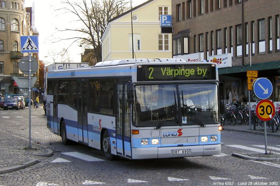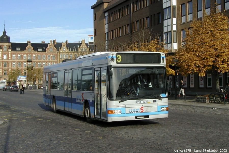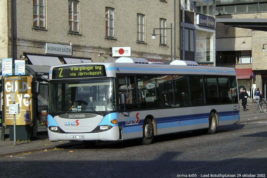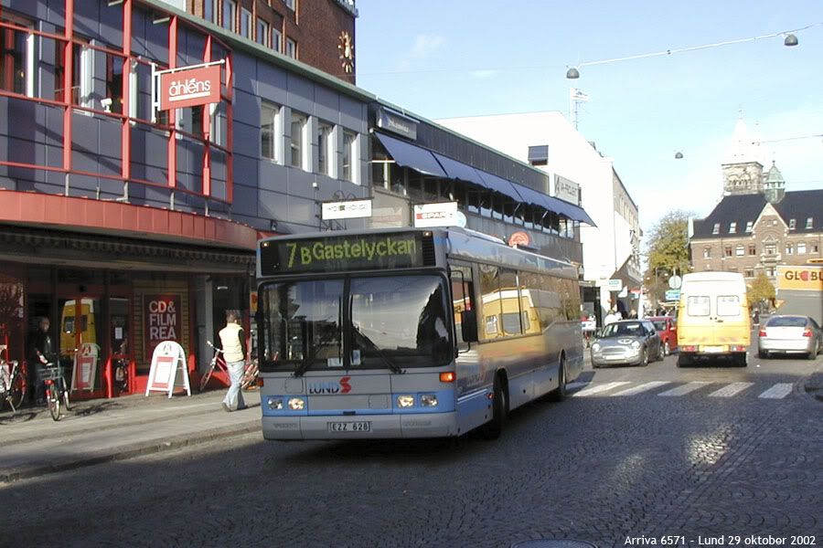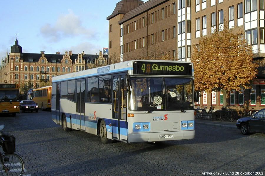 I oktober 2002 befann jag mig i Skåne och bland annat i Lund. På den tiden körde Arriva stadstrafiken och bussarna var lackade i Lunds egna färger. Vagnparken bestod främst av Volvo/Carrus gasbussar men även ett antal Scania och Volvo dieselbussar fanns.