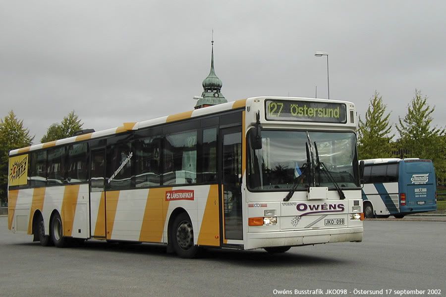 Angående JKO098 så levererades den som ny till Brunflo Buss men övergick 2000-06-14 till Owéns. Båda företagen var medlemmar i Centrala Buss som hade avtalet på trafiken.
