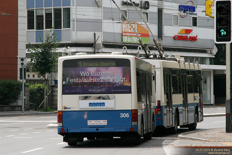 VBL 267 og 306 i Obergrundstrasse, Luzern, 04.07.2010.