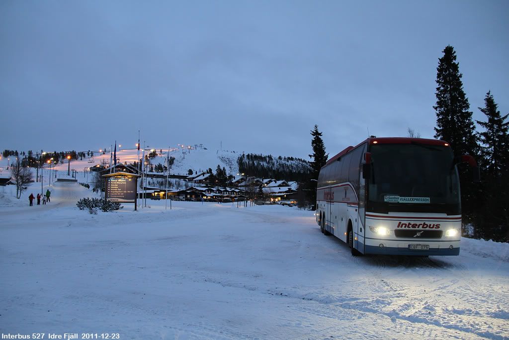 En hemsk trafik ut från Stockholm och genom Uppsala (där trafiken alltid är hemsk oavsett tid på dygnet), men vi når ändå Sälens By några minuter före tid och får här vänta in bussen från Köpenhamn-Skåne-Göteborg som har bytespass till Idre. Nobina 6329 passerar bakom mig.
