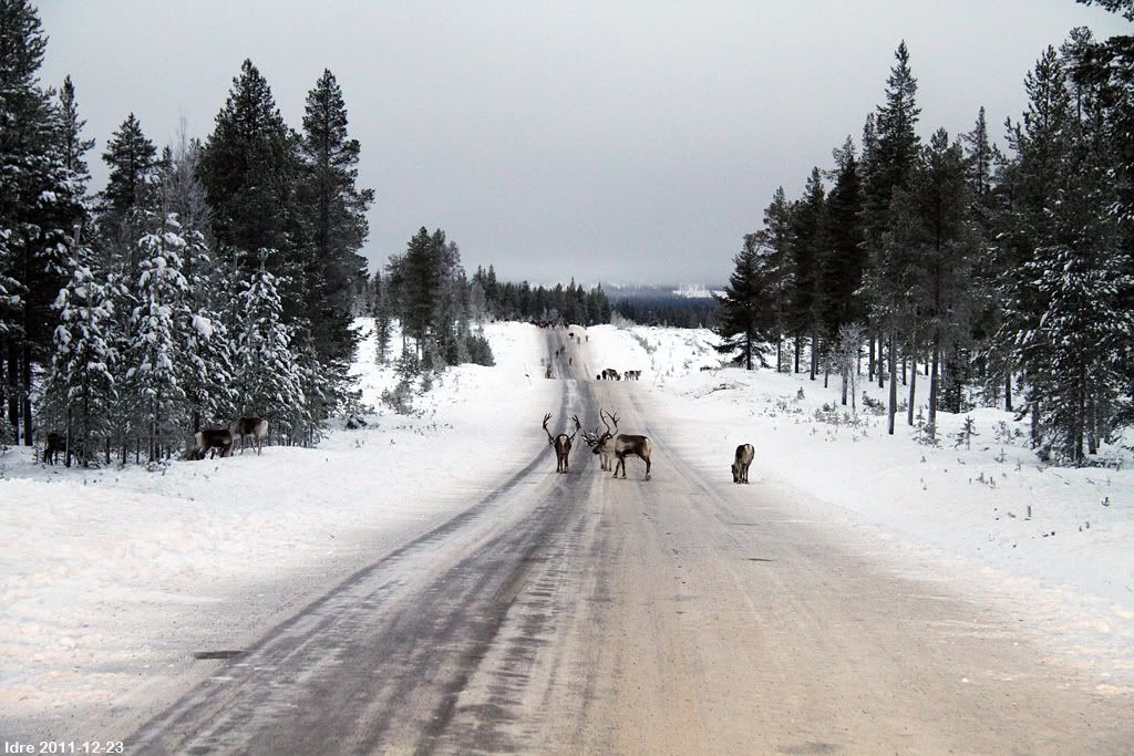 Fina bilder. Att de saltat vägarna är ganska uppenbart med alla renar på vägen. Ingen bra kombination med halka och renar...