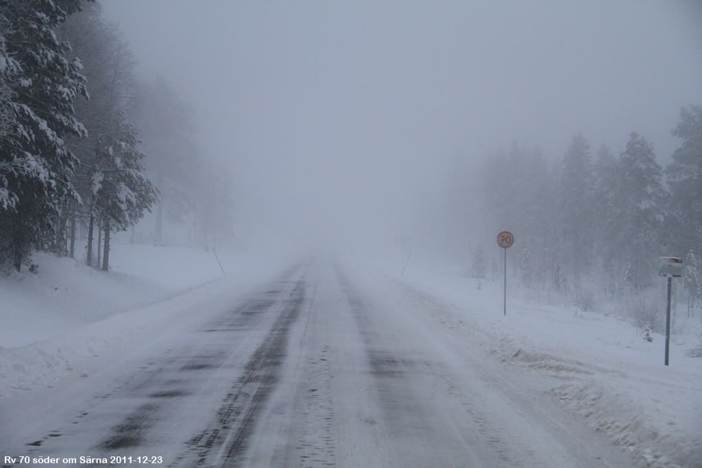 Snart så börjar det falla duggregn på vägen och det var bara att smyga söderut. Många var det som hörsammade varningarna, på 2,5timme mellan Idre och Älvdalen mötte jag 7 bilar. Dalatrafikbussen dök inte heller upp, så den bör ha fastnat på vägen.