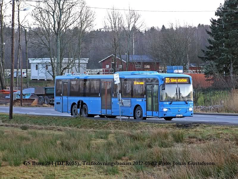 I bortre ändan på bilden ovan går en avtagsväg västerut (till höger i bild) mot Stora Holm och Säve Depå. Säve Depå är gamla Flygvapendelen av Säve flygplats med sina bergshangarer, där numera flygmuséet Aeroseum finns. Stora Holm är ett säteri men är också känd för alla som tagit körkort i Göteborg för sin trafikövningsbana, där halkprovet avläggs. Nedan står en buss från GS hittills senaste leverans just vid hållplatsen Trafikövningsbanan, med ett nyss avhjälpt fel. Servicebilen har precis lämnat platsen och bussen skall till att fortsätta kraftigt försenad.