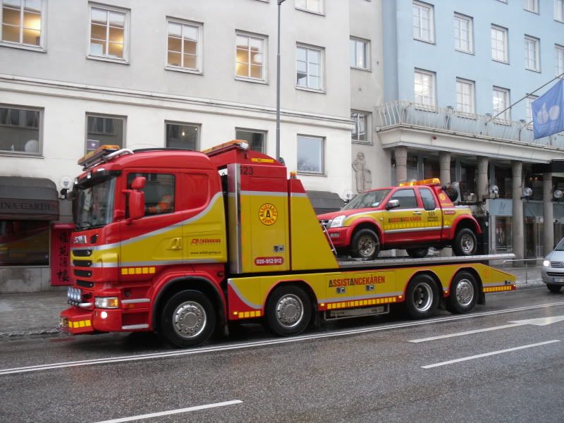 Fanns ett åkeri i Stockholm som ofta fick bärga varandra,såg lite kul ut när flaket fick ta toyotan och hänga chevan i grinden.