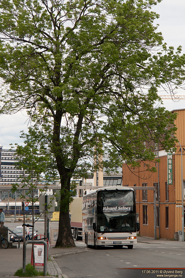 Helgen 17.-19. juni skulle tilbringes med blant annet grilling på en privateid jernbanestasjon oppi Nord-Trøndelag, men fredagen bød på tid til å fotografere i Trondheim, og da forumisten cedlind viste interesse for at vi skulle ta en fototur der sammen så ble det selvsagt det. Bussen som utløste kommentaren på det norske forumet om å gjøre det sammen var dobbeltdekkeren til Håvard Selnes i Verdal, og da er det jo bare naturlig å ta med et bilde av den. Som en ser valgte jeg å ta bildet i et perspektiv som passer for en dobbeltdekker.