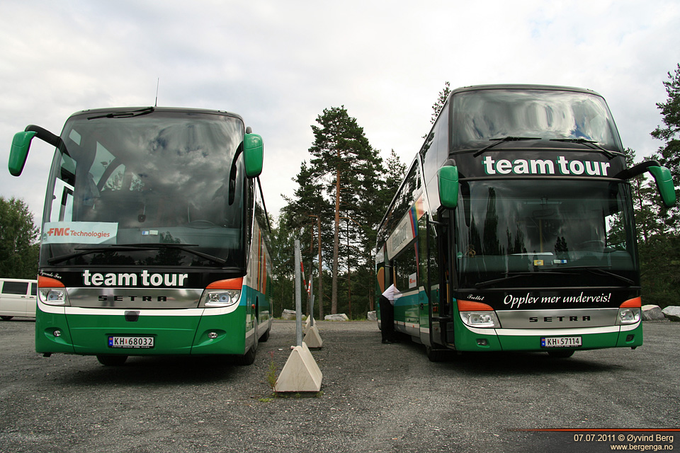 Under jazzfestivalen på Kongsberg var det mange ekstra arrangementer der folk ble sendt hit og dit i turbuss, og det var det blant annet Team Tour som stod for. Jan Såtvedt (eieren av Team Tour) var denne dagen koordinator for togerstatningen på Kongsberg stasjon, og etterpå skulle han og et par andre kjøre ansatte i FMC Technologies til et arrangement under festivalen. Jeg heiv meg med da de kjørte opp løypa og gjorde klar bussene, og på en parkeringsplass ved næringsparken fikk jeg bilde av "Syvende Far" og "Trollet".