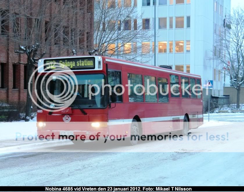 Sedan Lundalinje 512. Nobina 4685 gör ett uppehåll vid Vretens t-banestation. 4685 var väl tillsammans med 4686 stationerade i Vallentuna direkt efter nyleverans?