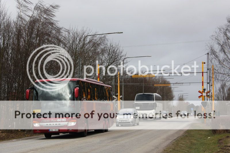 Bussen hann inte passera plankorsningen då det kom ett godståg, troligen omledning via Teckomatorp.