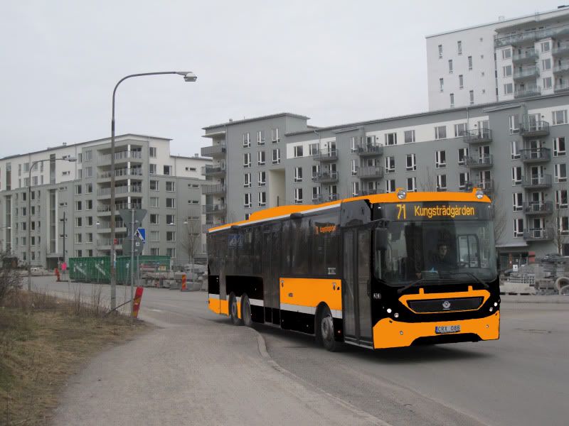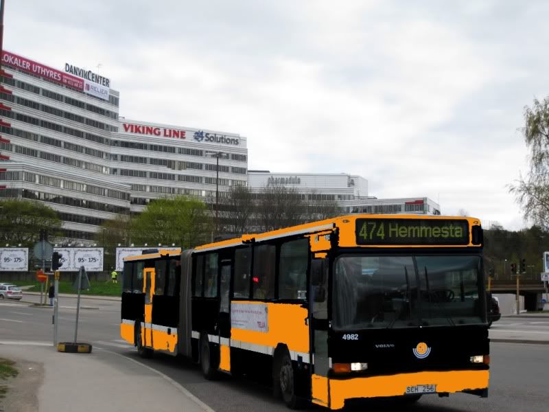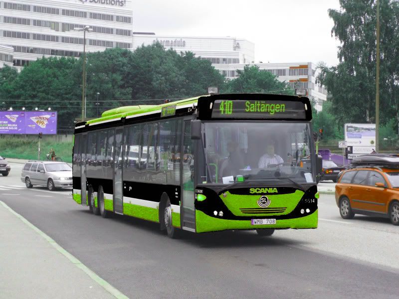 En av de bussar jag en gång använde som testbuss för att försöka skapa något snarlikt med den forna BSBV-lacken har här fått sin grundfärg gul utbytt mot grön och då kan det se ut som nedan: