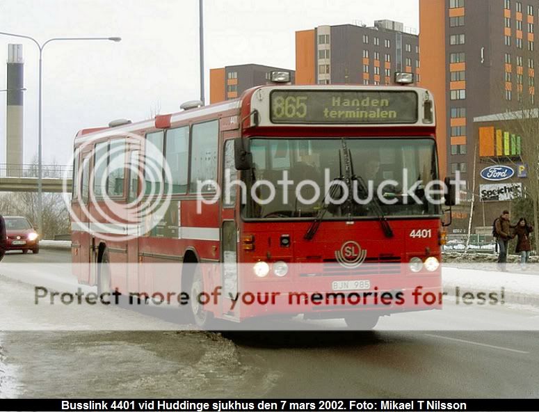 Här kommer två bilder modern historia, två f.d. SL H8-vagnar. Busslink 4401 tillhörde Handen och ses här på Handenlinje 865 som vid fototillfället vände vid Huddinge sjukhus. Numera är linjen förlängd till Skärholmen.