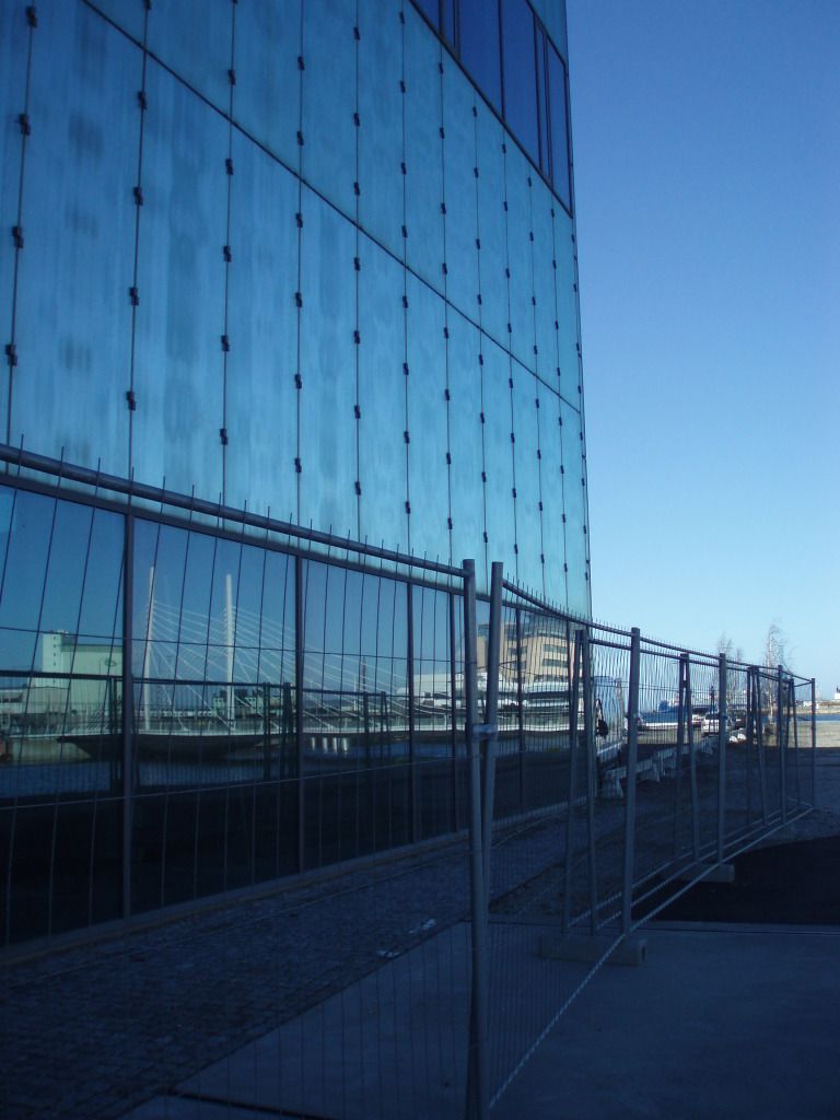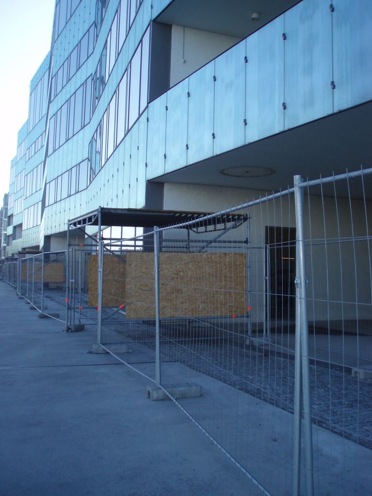 Malmö högskola har en glasfasad som inte tåler blåsten, då trillar glasskivorna ner, där av avspärrningarna det har varit så här i några år. Byggnaden heter Orkanen eller om det är kvarteret som heter så. ;)