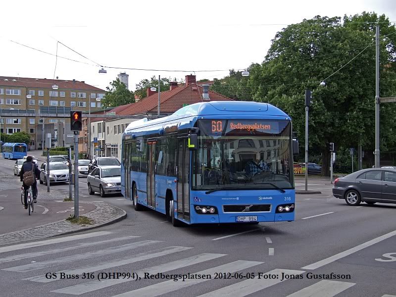 På väg till jobbet tog jag en liten omväg över Redbergsplatsen i hopp om att få några hybridbussar på bild. Förhoppningen slog in. Här kommer 316 med en förare som vinkade glatt efter bilden tagits. När föraren passerade mig igen efter att ha släppt av passagerarna och rundat Redbergsplatsen öppnade han dörren och frågade om jag var Buss-snackare. Det visade sig att föraren var Buss-snackaren Erling L.