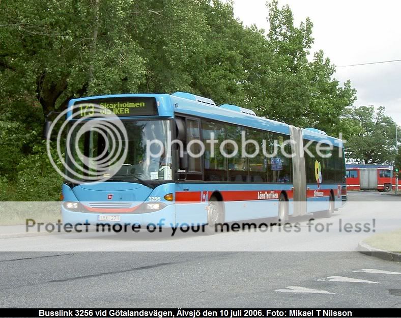 Här kommer några vardagsbilder från Älvsjö, tagna sommaren 2006. Först en av Nybodas/Söderorts inlånade vagnar från Örebro stadstrafik, vagn 3256. Här på stomlinje 173. Det passar ju bra med blått på stomlinje  :)