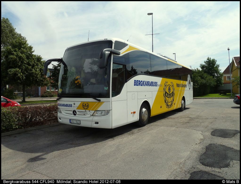 Mjällby AIF:s spelarbuss på besök i Mölndal.