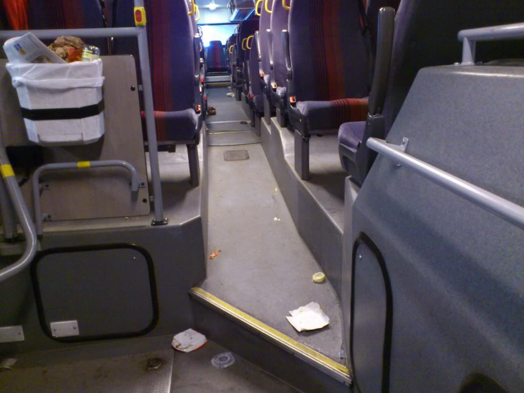 En eloge till trafikledningen som snabbt bytte in den mot en ren och tankad buss när jag rapporterade problemet.