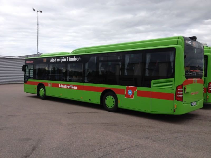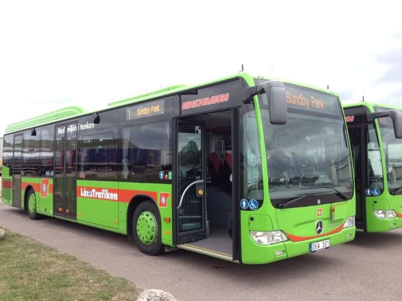 Såg två stycken Citaro stå nere vid depån i Strängnäs, båda var märkta med "miljön i tanken". Är de någon som vet vilket bränsle dem ska köra på? Miljödiesel? Biogas? Hybrid? Det kändes som Hybrid/El bussar! Hann dock inte ta några foton!