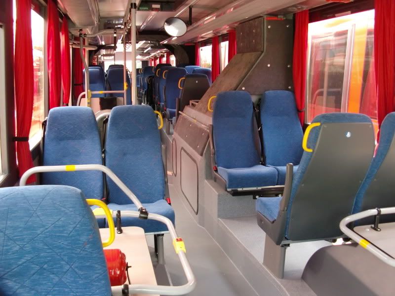 ser ut som alla b9s med "regionalstandard", blåa stolar och röda gardiner, bakre barnvagsplats och den "nya" instrumentpanelen