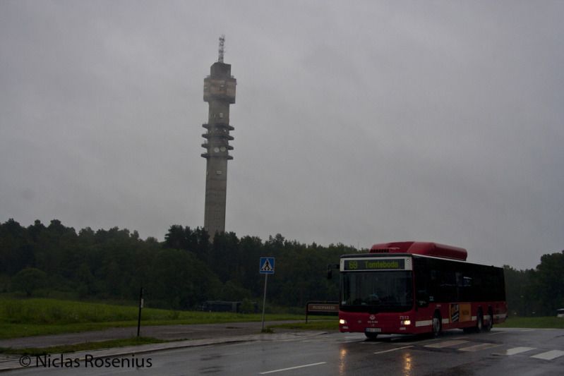 Kaknästornet bland molnen och Keolis 7513