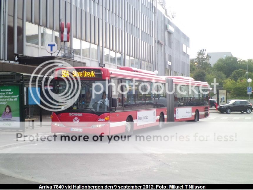 Det stämmer, som någon här på Bussnack tidigare meddelade, att alla Råstas Scanialedvagnar nu är märkta med Arrivanr, även de i den senaste Keolis 37xx-serien hos Råsta. Här en bild på 7840 på linje 504 mot Stora Ursvik.