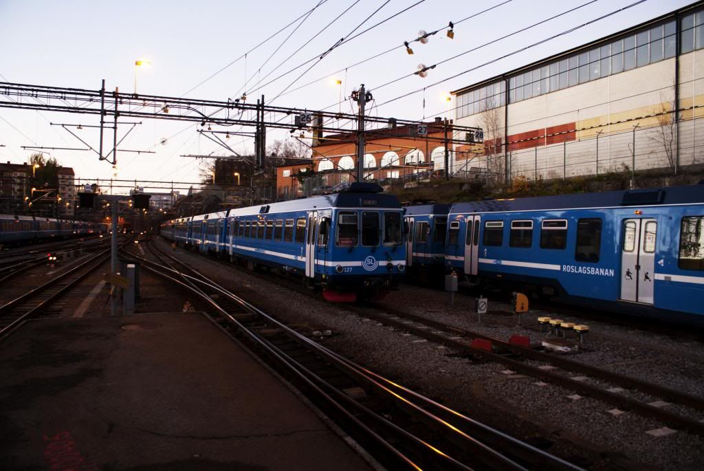 Stiliga bilder, P.Ek!  :) Jag bidrar med en bild med två av Roslagsbanans ombyggda tågsätt, uppställda vid Sthlm Ö för några veckor sen.