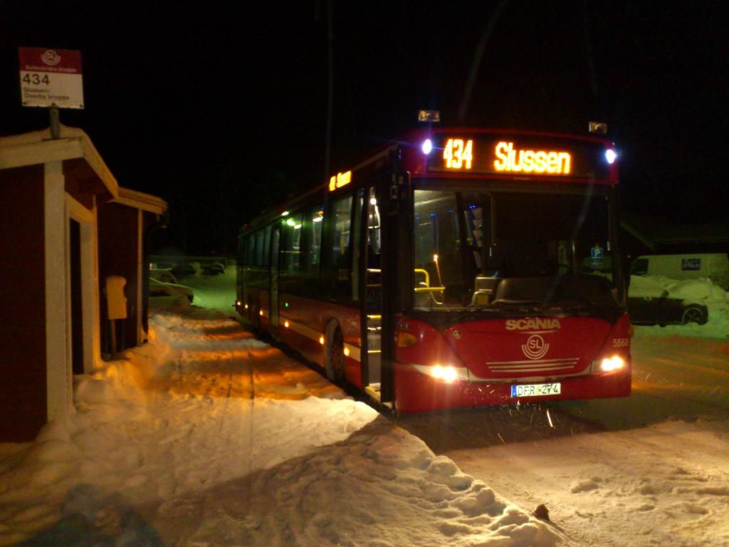 Keolis 5568 på linje 434 från Överby till Slussen.  Här vid Sollenkroka brygga.