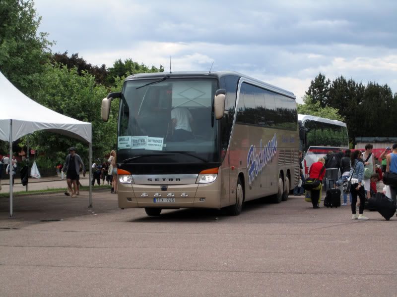 Bara ett par dagar efter hemkomsten från turnén var det dags för ännu en resa; till Peace & Love-festivalen i Borlänge. Här är Hedmans TTX745 som kör shuttlebuss mellan campingen och resecentrum: