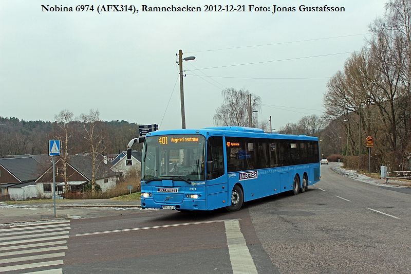Här en bild på 401:an i Agnesberg. Agnesbergsborna har klagat våldsamt över att deras direktförbindelse till stan försvann 9/12. Västtrafik gav efter och ledde om högtrafiklinje 173 Gårdsten- Heden över Agnesberg men kortade av den till Svingeln, dessutom går linjen bara just i högtrafik. Övriga tider på dygnet är Agnesbergsborna hänvisade till 401:an och att antingen byta till spårvagn i Angered eller pendeltåg i Surte.