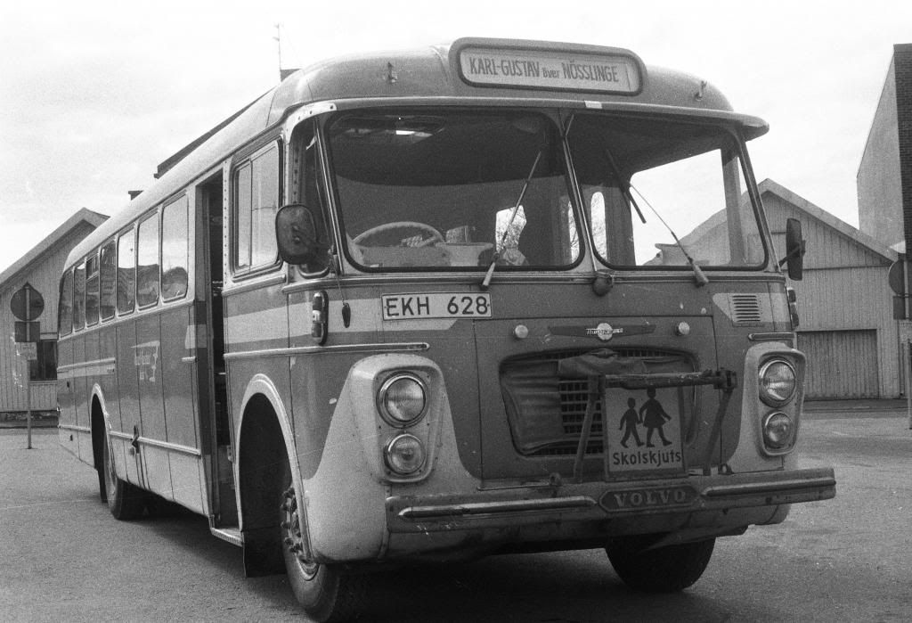 Den översta bilden visar EKH628, f.d. N228 vilket är en Volvo B635 med chassinummer 2975. Karossen har tillverkningsnummer 1-346. Den undre bilden visar EKH557, f.d. N127, en Volvo B615 med chassinummer 2328 och karossnummer 1-320. Bussarna är fångade den 23 april 1974 på bussterminalen Lorensberg i Varberg.