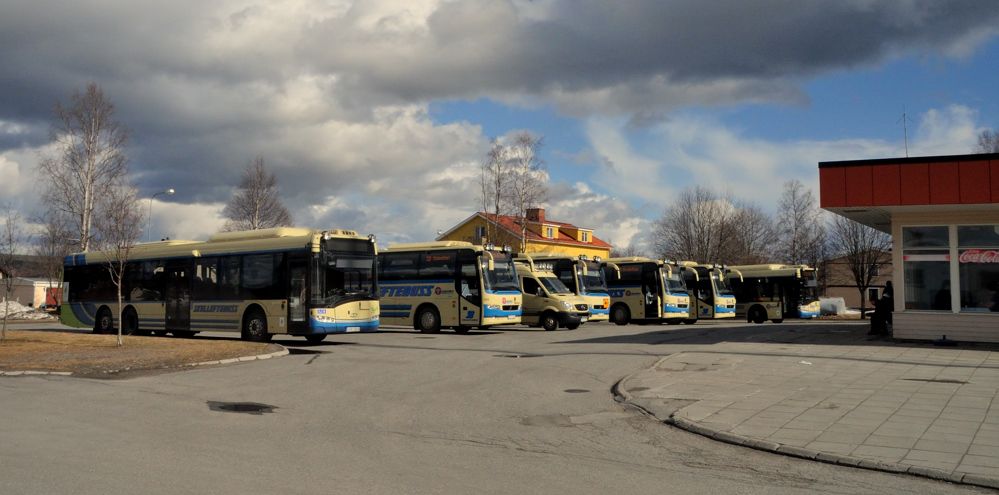 Ja, bussarna på bilden är ju boende i Burträsk, men alla kommer nog inte in till stan varje vecka. Bl a 329 som normalt används på linje 228 och Mercabussarna kommer ju inte heller dit.