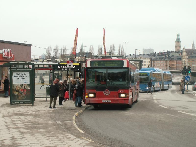 Kollegan 5063 kämpar på i vinterkylan, här vid Slussen 9/3-07.