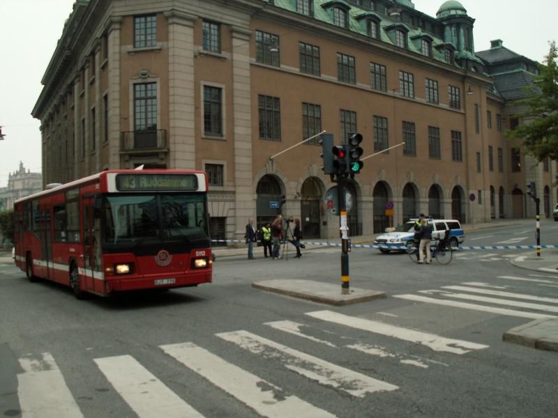 En rätt trevlig linje att köra är 43:an mellan Tanto och Ruddammen, här i färd med att passera polisavspärrningarna vid Jakobsgatan 25/9-06.
