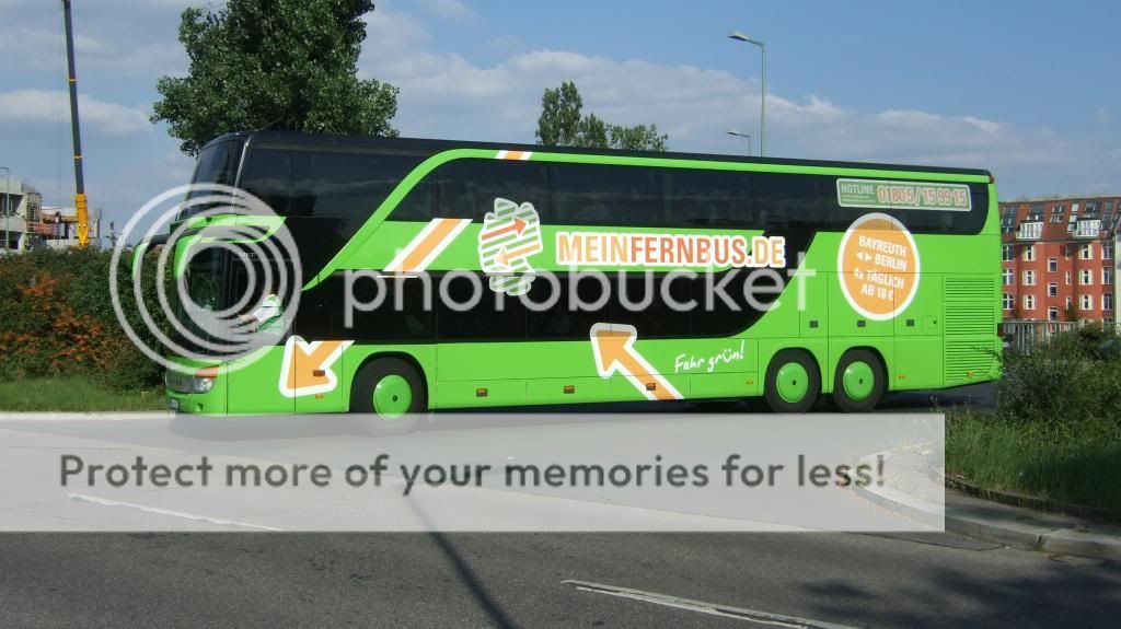 pa Meinfernbus-linjen München-Berlin trafikeras alla bussar med SETRA 431 DT fra ALBUS-gruppen i Österrike. Vissa bussar fortsättar mot Zürich. Och det finns extrabussar som kör endast München-Zürich - dom är normalt SETRA-400 3-axler-bussar fra Albus men 1 omlopp kommer ocksa fra SCHÄCHER-REISEN och kanske bli en Travego. Om Du titta pa hemsidan www.meinfernbus.de och klicka pa "Unsere Buspartner" sa ser Du en list med alla bussföretag och bussmodeller som finns pa den speciella linjen.