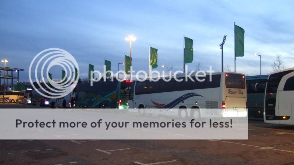 Efter ca. klockan 16:00 kommar alla bussar till insammlingsplatsen direkt vid huvudentren fra mässan. Sa blir det langa köer...