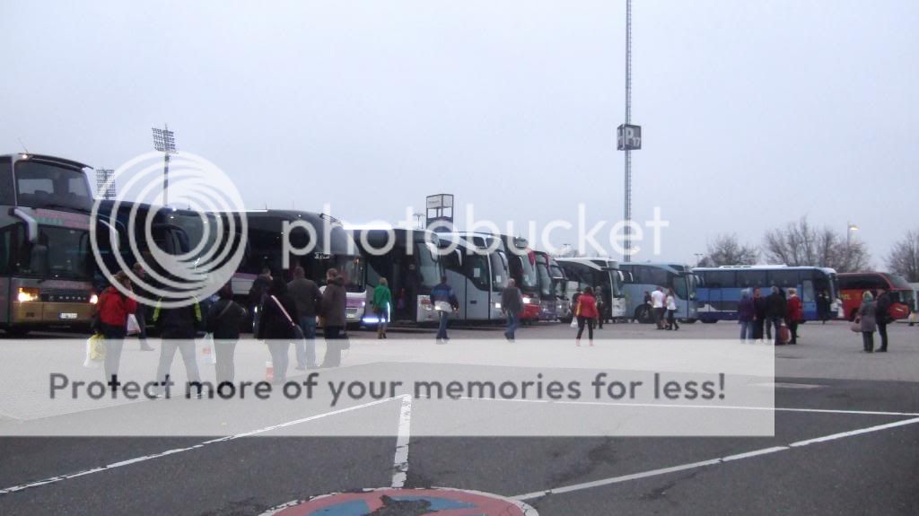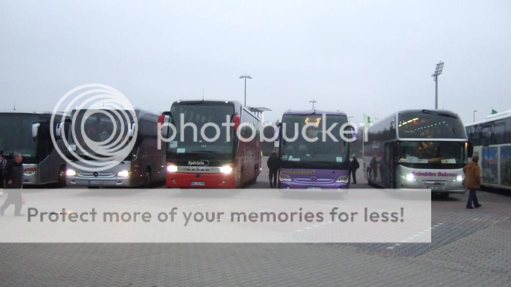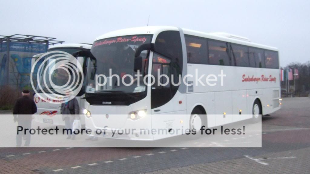 En SCANIA Omni Express i kortversion fra Sudenburger Reise-Spatz bredvid en Bova. Om första gruppen är fullt, starta man nästa gruppen vid insammlingsplatsen. Tyvärr kommer det flesta bussarna senare om det är mörkret... .