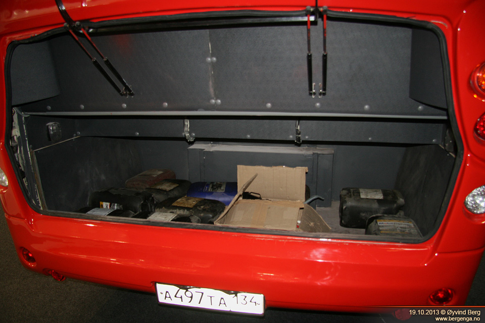 Innholdet i bagasjerommet får vi håpe at ikke inngår i bussen til vanlig. Russerne ville tydeligvis spare mest mulig penger på drivstoff på turen til Belgia, så de har tydeligvis stuet bagasjerommet fullt av dieselkanner hjemmefra. Noen var igjen til turen hjem igjen, og de lå der under hele messa. En eller flere av kannene virket å være lekk, for det stinket skikkelig diesel flere meter unna bussen.