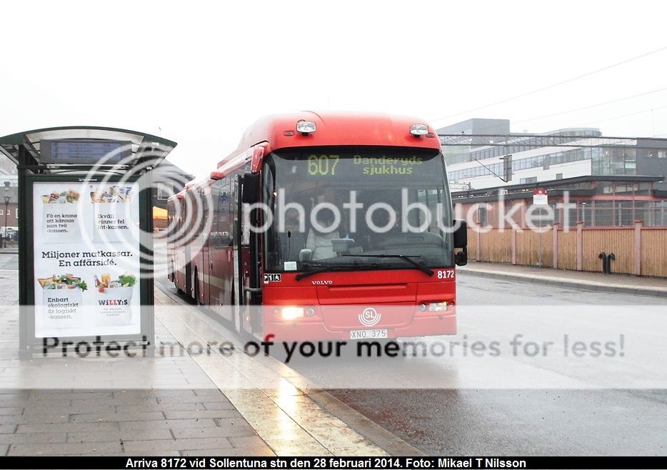 Nu verkar de flesta av ex-Keolis-Volvo B9S-vagnarna i Arrivas serie 8160-8172 vara i trafik. Bl a dök 8165, 8171 och 8172 upp i Sollentuna på linjerna 607 och 627.