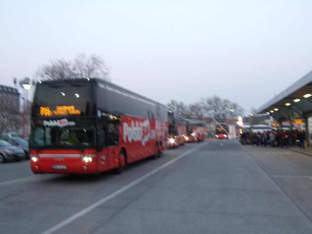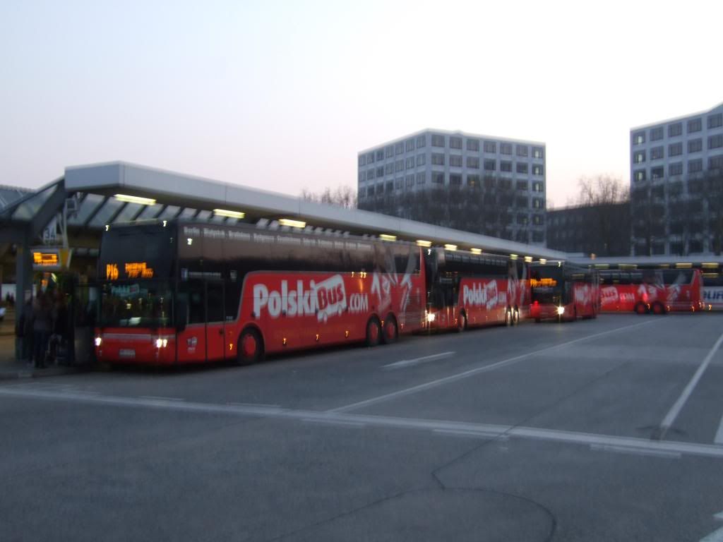 Lördagar 19:00 - Polskibus dominerar Centrala Bussterminalen ZOB i Berlin... .