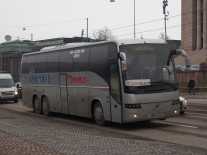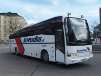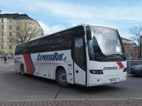 Helsingfors - Björneborg buss med en ny OnniExpress-logo. Samma firma, Keskimatkat, används för köra linjen med Onnibus också.