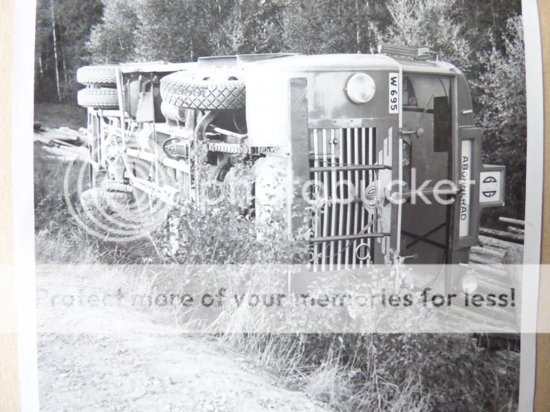 Rotade i min fars album igen och hittade denna bild.Möte mellan två GDG bussar slutade såhär illa för en av dom sommaren 1950 lyckligtvis utan personskador,bussen drogs upp på rätt köl av en traktor sedan kördes den för egen maskin hem. vid Gråheden mellan Lima och Transtrand i Västerdalarna (nuvarande RV 66)