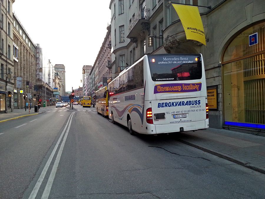Sista dagen var i torsdags, behövde hem för att köra i Malmö igår lördag, men min buss behövdes för en tur till Norge så den blev jag av med. Fordonsläget var lite mer gynnsamt för Traveller så fick låna deras splajs nya buss som lyssnar till namnet Judge. 490 mil på mätaren, luktade nytt, en grymt trevlig och pigg buss. Även om Euro 6-motorn låter som om den ska skära ihop när som helst men det ska visst vara så. Här vid stadshuset med en grupp tyskar.