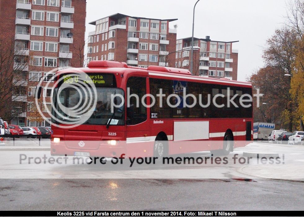 Här kommer några vardagsbilder från ett regnigt Stockholm söderort. Vi börjar vid Farsta centrum. Volvobuss Keolis 3225 kom från Örebro län till SL-trafiken och Handengaraget. Numera är den stationerad i Gubbängen.