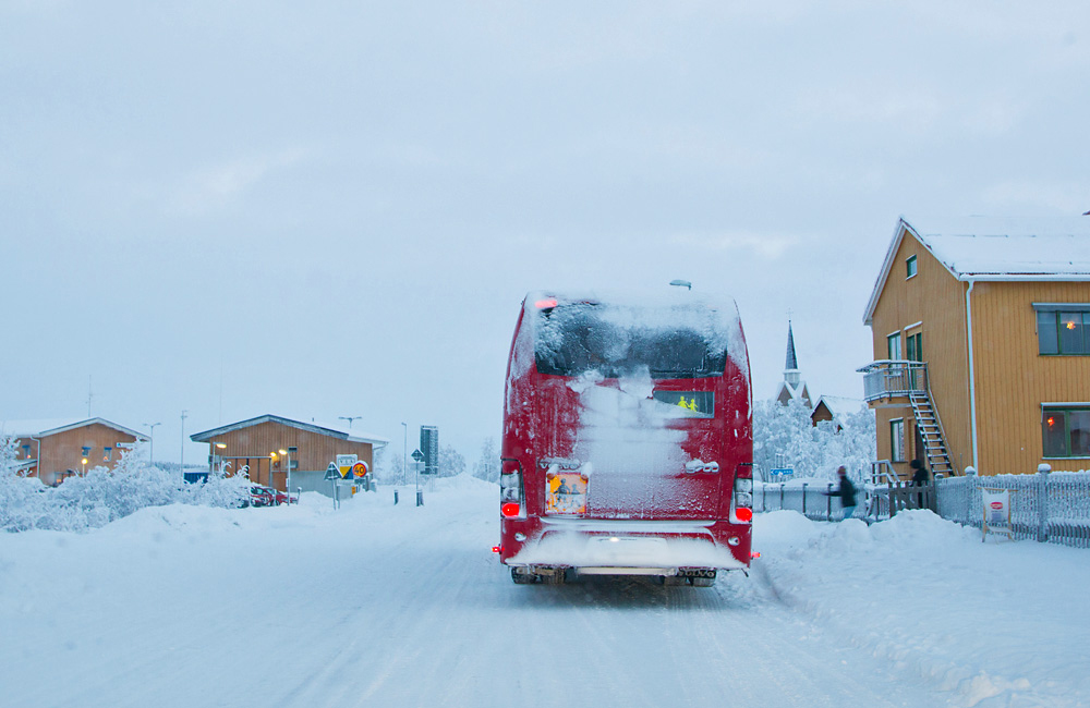 Karesuando, och skylten nedanför kyrktornet pekar mot Finland.